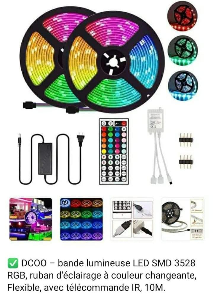 DCOO-Bande lumineuse LED SMD 3528 RGB ruban d'éclairage à couleur changeante- Flexible avec télécommande IR ,10M