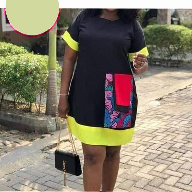 Mélange robe-blanche-pagne africain ; pour vos sorties, le travail.