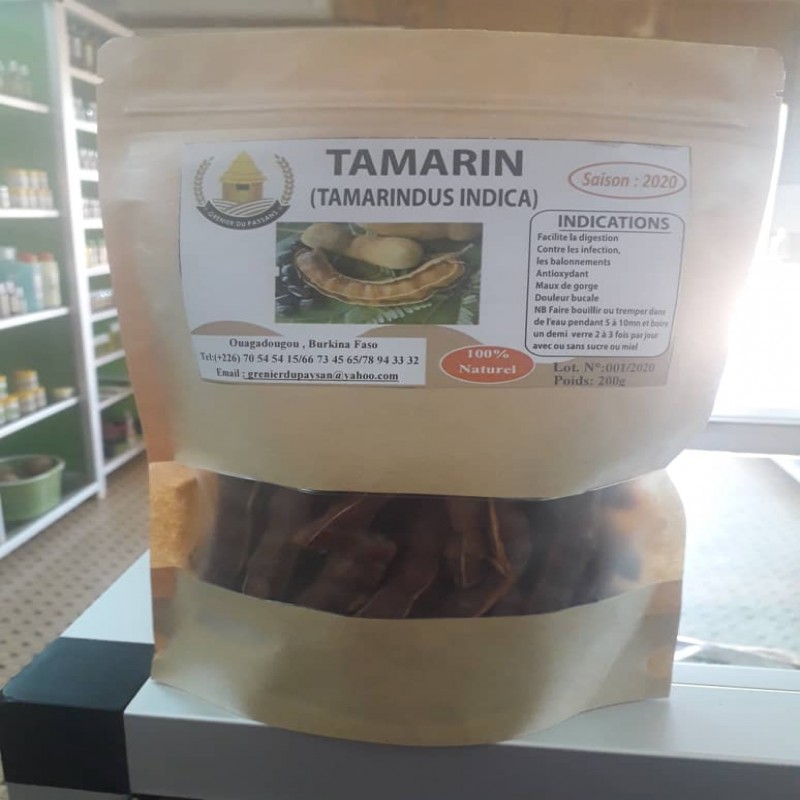Riche en antioxydants, la poudre de Tamarin facilite le transit intestinal. Le tamarin se présente sous la forme d'une gousse de couleur brunâtre, qui peut mesurer jusqu'à une vingtaine de centimètres de long. Bosselée, elle renferme de deux à dix graines entourées d'une matière fibreuse.