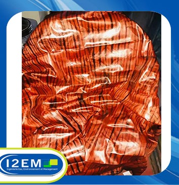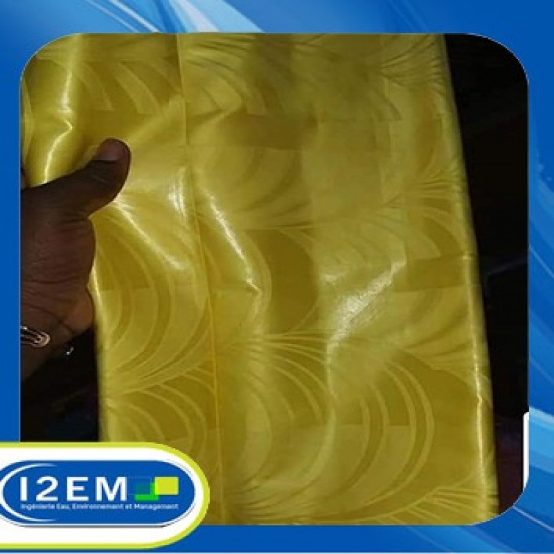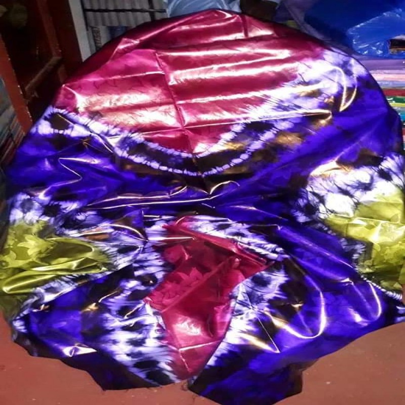 The African cotton-based bazin is hand-dyed to become a damask fabric characterized by stiffness and a dazzling shine.