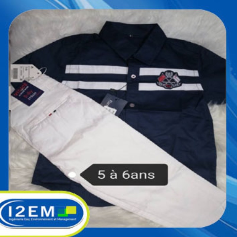 Ensemble garçon chemise bleu-pantalon blanc tendance pour les sorties