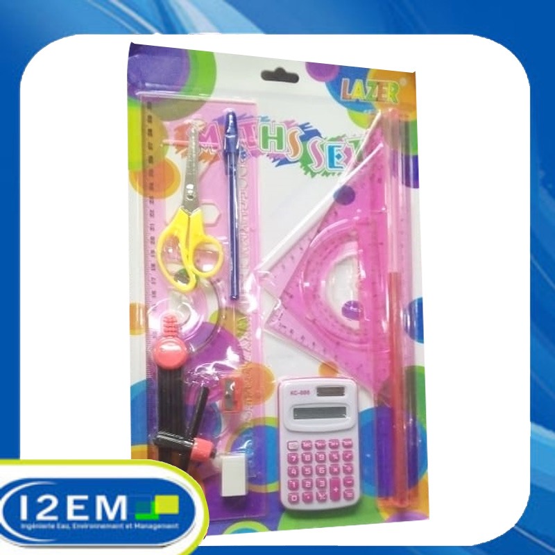 .Règle graduée 20 cm .Équerre .Rapport .Compas .Crayon .Gomme .Taille crayon .ciseaux .bic