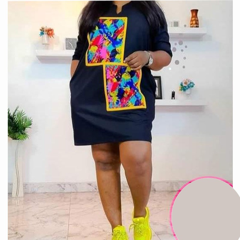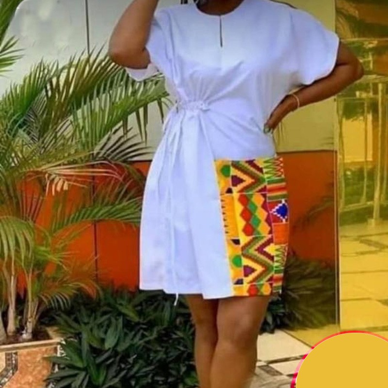 Mélange robe-blanche-pagne africain ; pour vos sorties, le travail.