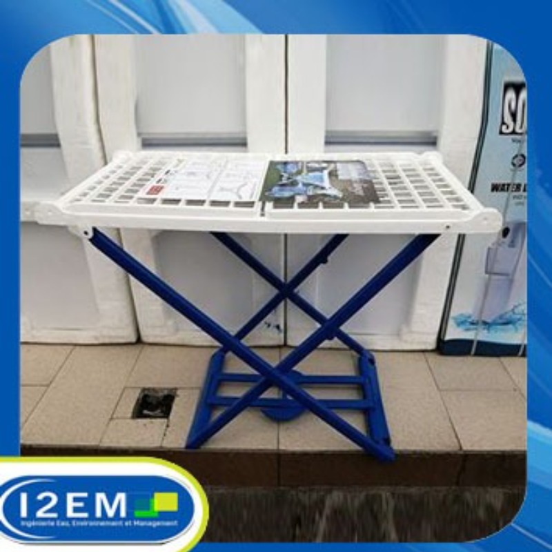 séchoir a linge pliable en plastique couleur blanc-bleu.